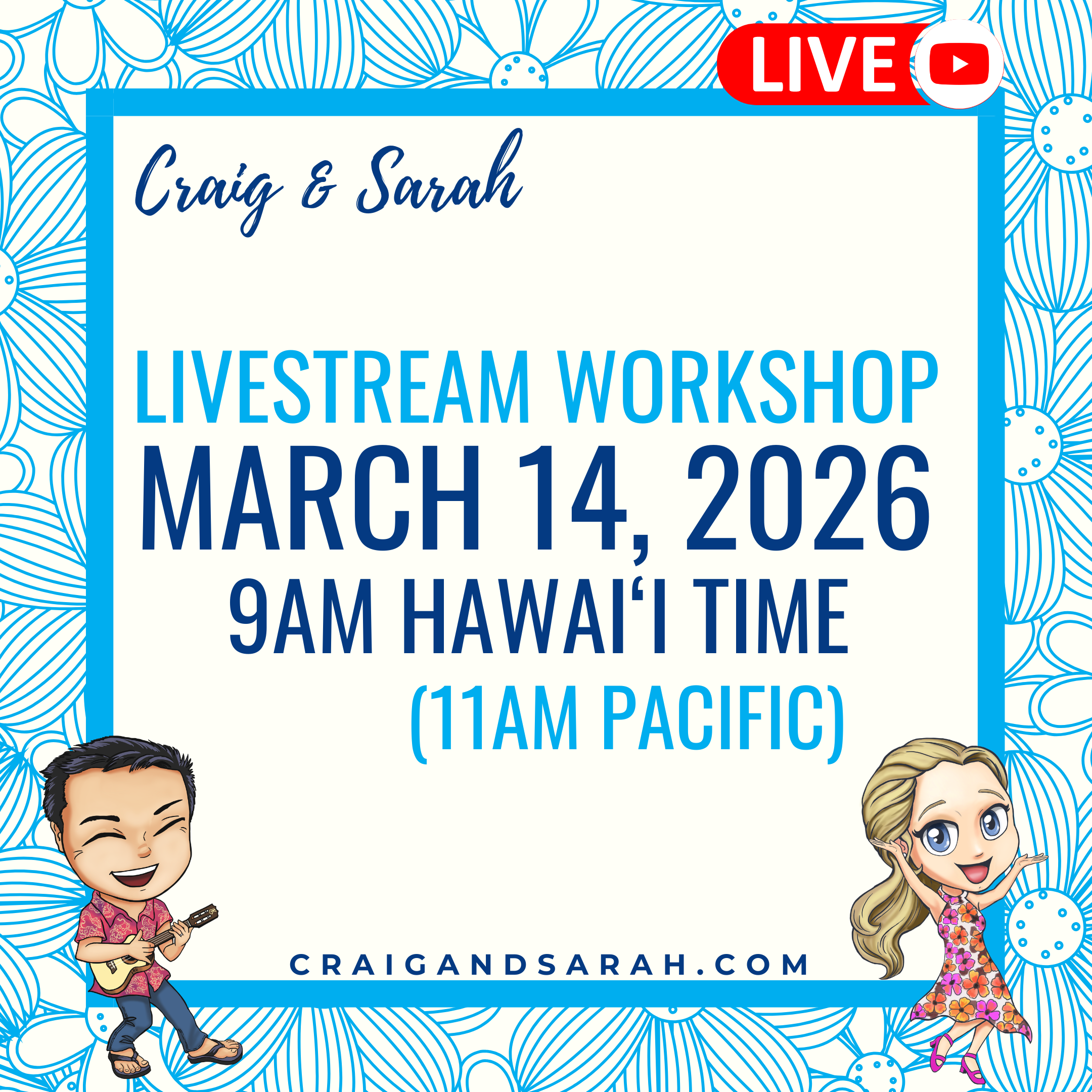 Craig and Sarah are world traveling performing artists, teachers, and event organizers. They have spent the past 15 years headlining Ukulele Festivals and events world wide, including Australia, The United Kingdom, Europe, Canada, China, and more! Utilizing their experiences abroad and across the United States, they have hosted multiple Ukulele Cruises and Ukulele Retreats. Their commitment to the Global Ukulele Community is unparalleled, with the creation of the first free Online Ukulele Festivals (“Not so Mini Fests”) and free Livestream workshops.